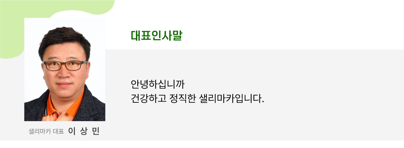 안녕하십니까? 바르고 건강한 식습관을 위해 노력하는 샐리마카입니다.